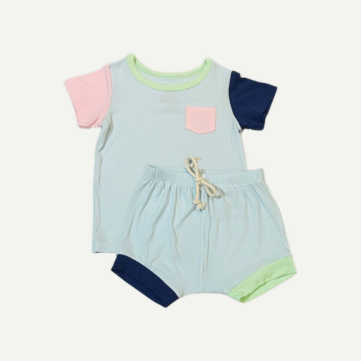 Signature Air Bamboo™ ActiveKidz Brise / Colour Block / 2 Piece Shirt & Shorts Set - Sky