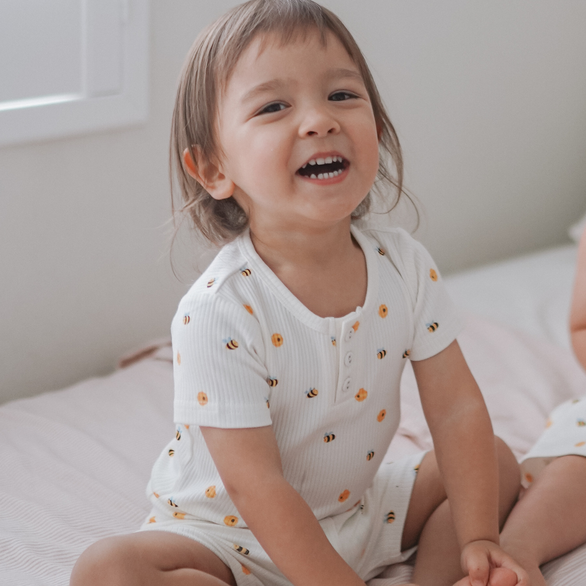 • Print in Honey Bee - playful buzzing bees and beehives bring a dash of sunshine and charm to every outfit