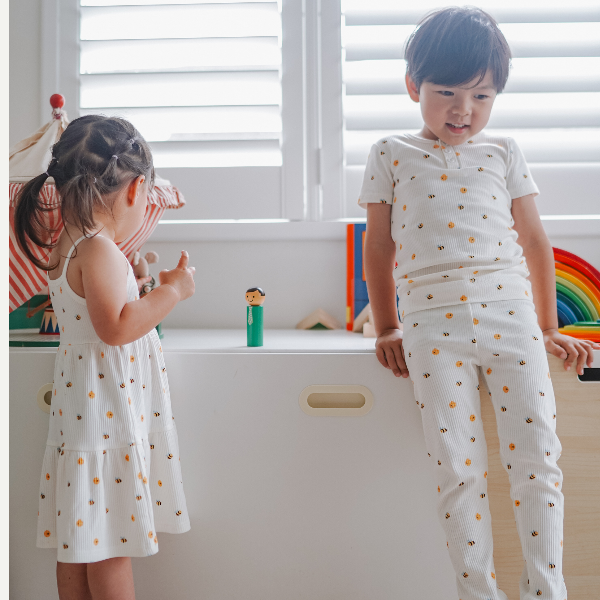 • Print in Honey Bee - playful buzzing bees and beehives bring a dash of sunshine and charm to every outfit