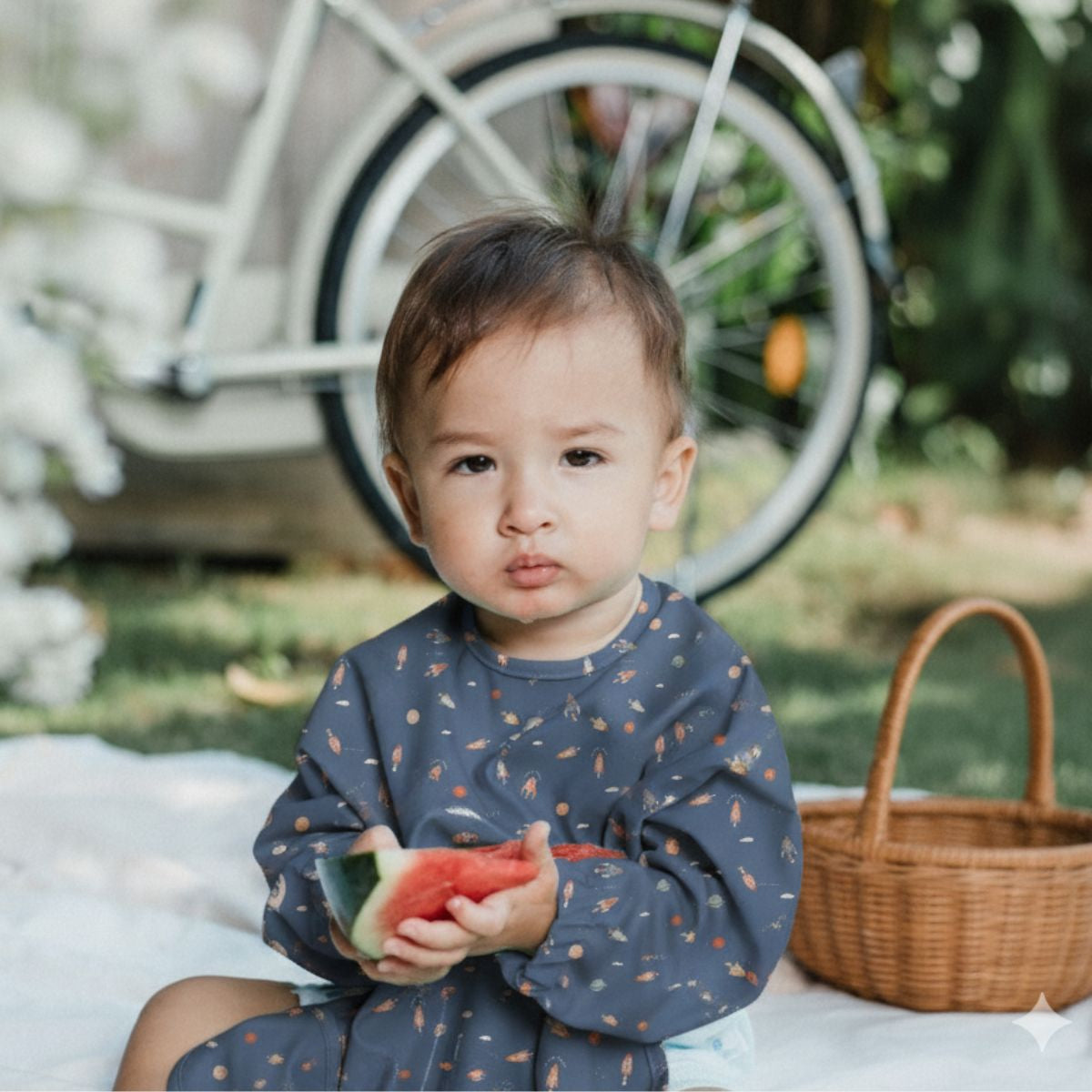 The ultimate all-in-one solution for mess-free mealtimes and full-body protection. This wearable bib ensures that your baby's exposed areas are fully protected from food spills, making it perfect for baby-led weaning and everyday meals.